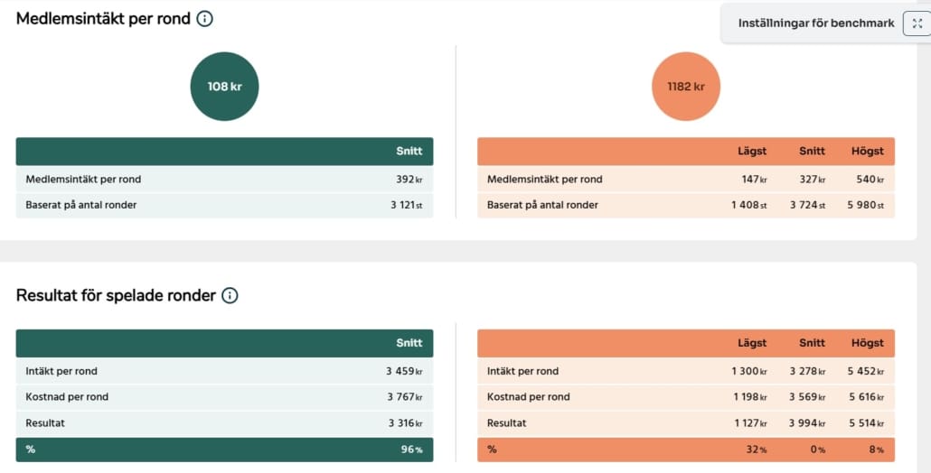 Benchmark är Business Boards modul som ger golfklubbar möjlighet att jämföra sina nyckeltal med andra klubbar och marknaden i stort. Genom att sätta den egna klubbens siffror i relation till omvärlden skapas nya insikter som gör det enklare att förstå nuläget, identifiera styrkor och se var det finns störst utvecklingspotential.